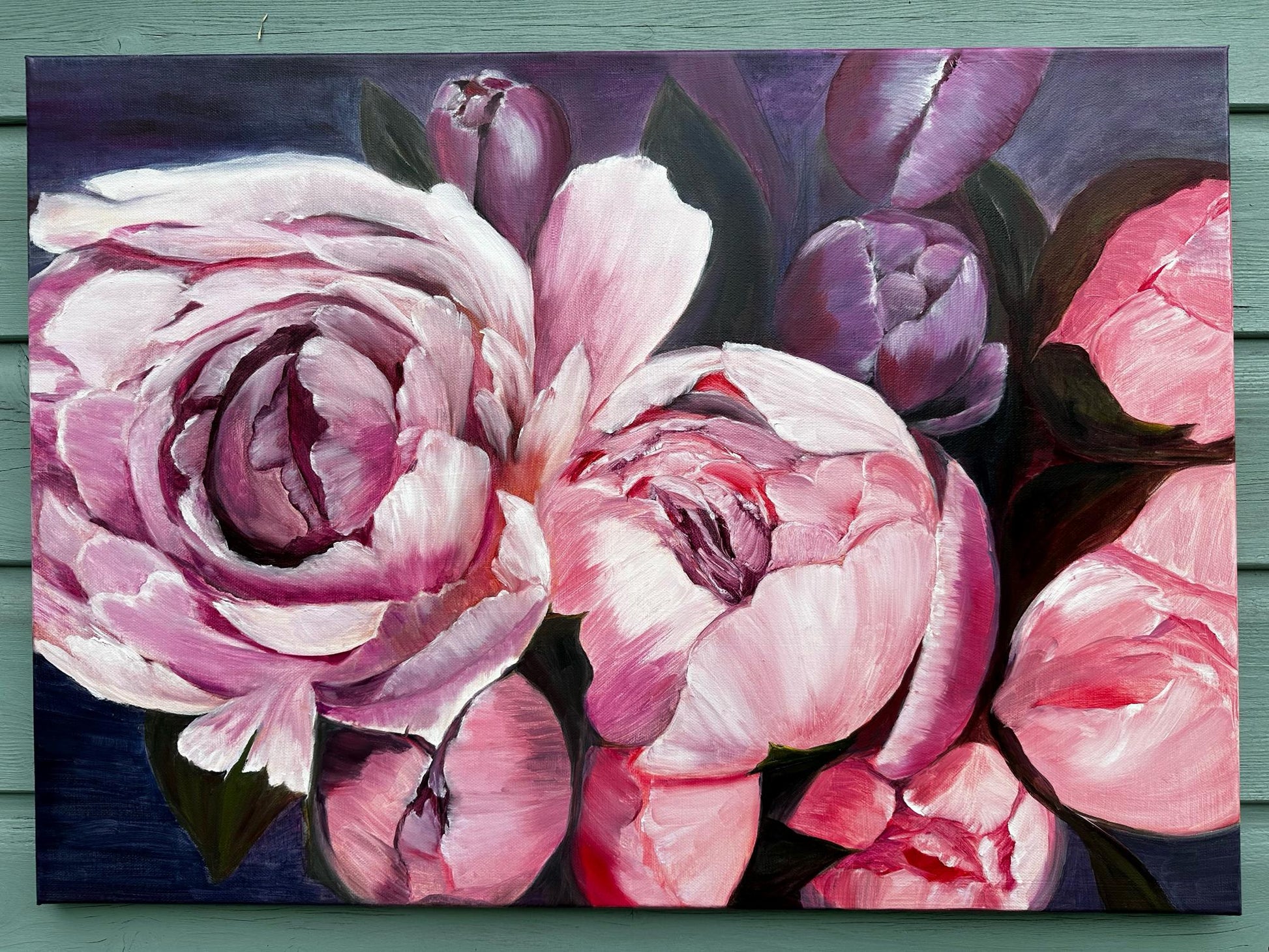 Raw Beauty captures the lush intensity of peonies in full bloom, their layered petals unfolding with drama and depth. Painted in rich tones of pinks and purples, this piece celebrates the untamed elegance and emotional power of nature’s most beloved flower.
